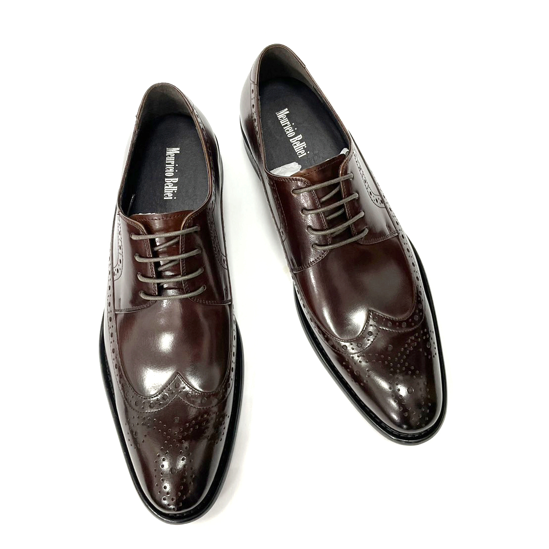 【商務/婚鞋】 油蠟牛皮 咖色雕花 韓系風格 正裝紳士德比皮鞋